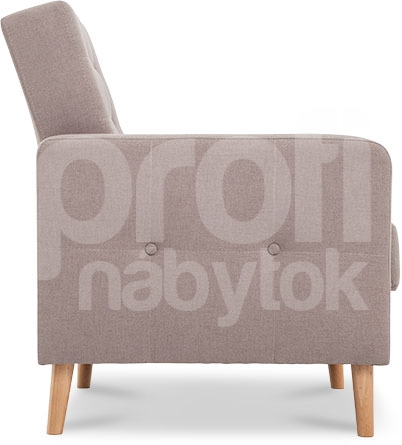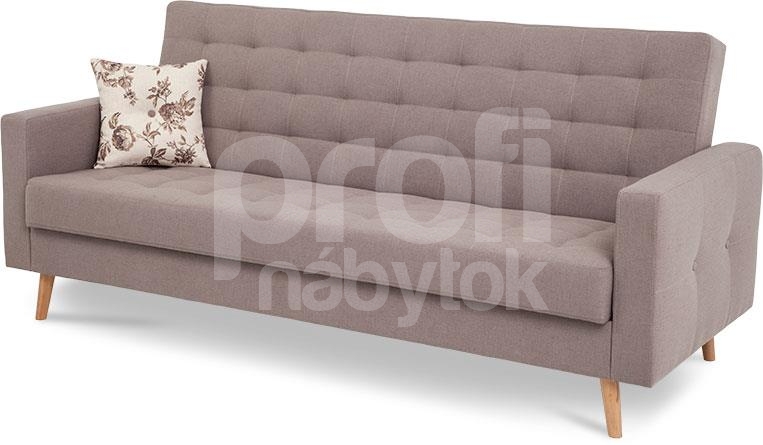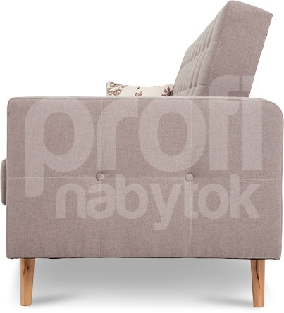 Rozmery 3-sedu šxvxh 213x94x85 cm rozmer spania 187-115 cm, rozmer kresla šxvxh 76x94x78 cm. Nohy sú drevené z bukového masívu. Sedaciu súpravu je možné objednať v látkach PORTO, INARI, ASPEN / za látku Aspen je príplatok 5% k cene sedačky a kresla/. Vankúš je v cene.
